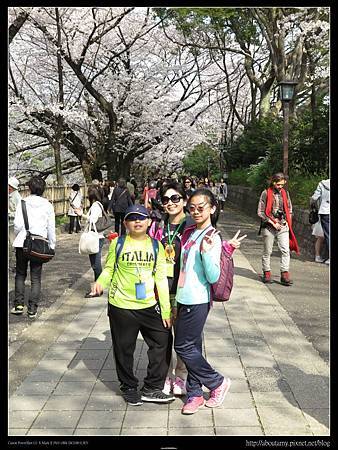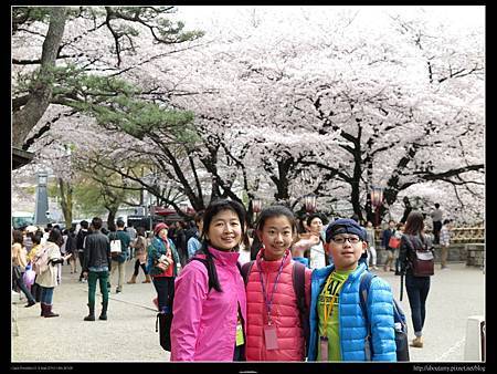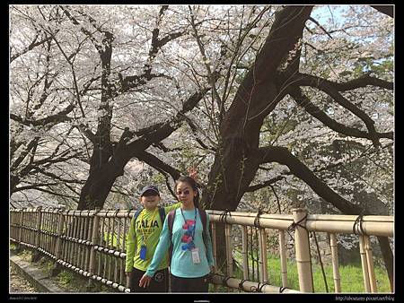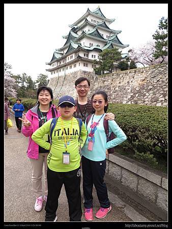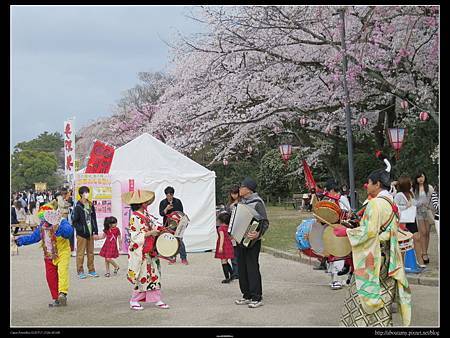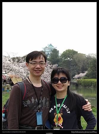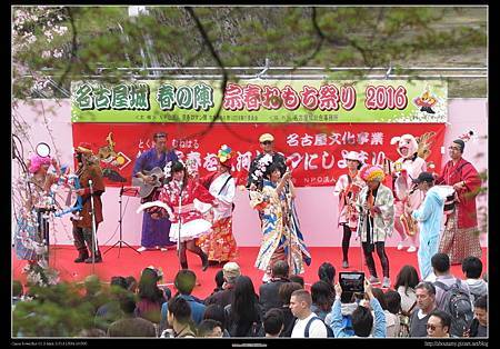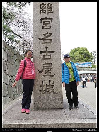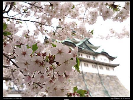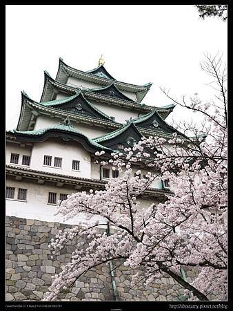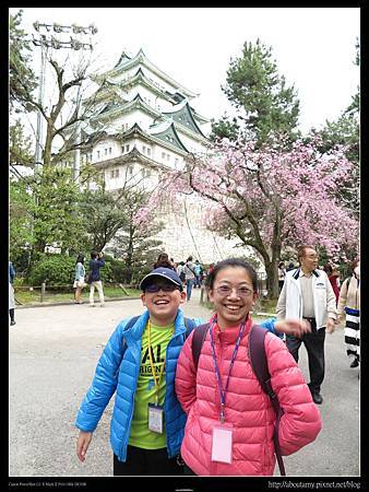 吃完午餐,大家又打起精神來賞櫻去! 為了不減少Willy可以賞櫻的時間,此行我們沒入內參觀大、小天守閣http://www.nagoyajo.city.nagoya.jp/01_goriyou/01_01_setsubi/index.html,只是在外面拍張照留念. 然後跟著Willy的步伐,哪裡有櫻花,往哪裡走. 也沒有一定的動線賞櫻,因為當天人潮眾多很擁擠,又有許多表演活動在進行中. 我覺得現場搭的臨時舞台,載歌載舞的表演人員、破表的擴音器…,相較於一旁莊嚴屹立的天守閣,高雅綻放的櫻花,反而有點兒格格不入的感覺.