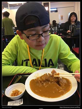 一進名古屋城http://www.nagoyajo.city.nagoya.jp/05_shiki/05_05_pickup/sakura20160408.html,左手邊就近就有一個不起眼的食事處,一進去就立刻在販賣機前看圖點餐. Willy和Ashley點了寬板麵(日幣600元),Ray和我點了咖哩豬排飯(日幣900元). 這裡採平價自助式的方式點餐,從機器取出票卷後,拿一份票卷給廚房,另一份自己留著(因為煮好了會叫號碼取餐). 座位自己找,有空位都可以坐. 水和餐具要自取. 至於聽不懂日文的號碼也別怕,店員發現沒人來領餐,也會再用英文叫號碼.