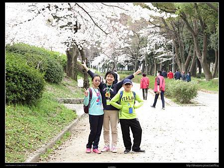 接著,自就近的榮駅2號出口往下走去,搭上名城線往名城公園駅下車,出了名城公園駅只要步行一下子就到了「名城公園」. 進入名城公園http://www.nagoya-info.jp/zhtw/see/facilities/meijo_park.html最先映入眼簾的是攤販,再往裡面走去,好多好多滿開的櫻花啊~ 櫻花樹下鋪著藍色的野餐墊,供民眾在櫻花樹下野餐. 頓時想起我們自己也有從台灣帶野餐墊來,結果忘了背出來…Ashley一聽到這消息,非常懊惱,整個人變得悶悶不樂.