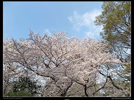 我不懂櫻花,也不懂攝影. 但發現目前為止在日本大都看到偏白色或者淡粉色的櫻花. 而這般淺色盛開的櫻花,拍照時配上湛藍的天空和碧綠的草地甚是好看. 雖說今天沒下雨,不過天色大都偏白,偶有捕捉到一點兒藍天,已算是幸運. 然而沒有下雨的天氣,已經是老天爺給前來日本賞櫻的我們最大的恩賜了!