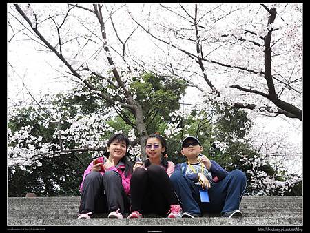 賞櫻期間發生意外小插曲,Ashley追逐著櫻吹雪,太忘我地旋轉,居然旋轉到旁邊民宅的停車格內,不小心腳勾到鐵鍊而跌倒,手掌皮肉傷. 至於Ray不知又在那兒跑跑跳跳給扭傷了腳. 還好Ashley和Ray都只是輕微小傷,並無大礙.