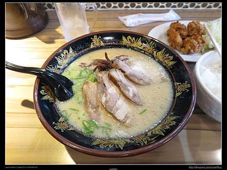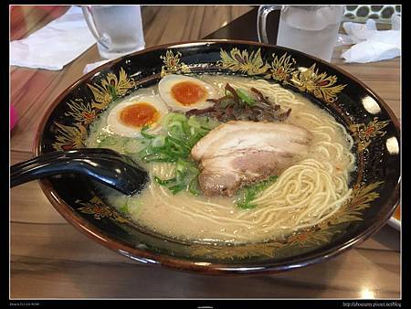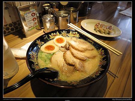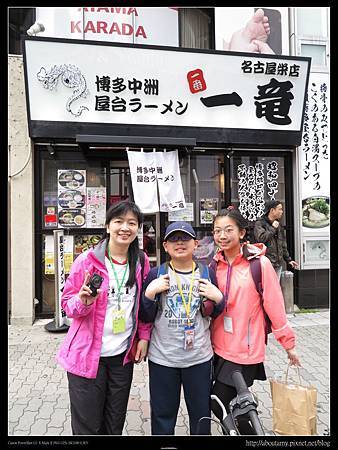 走回飯店途中看到一竜博多拉麵https://www.facebook.com/pages/%E5%8D%9A%E5%A4%9A%E4%B8%AD%E5%B7%9E-%E5%B1%8B%E5%8F%B0%E3%83%A9%E3%83%BC%E3%83%A1%E3%83%B3-%E4%B8%80%E7%95%AA-%E4%B8%80%E7%AB%9C-%E5%90%8D%E5%8F%A4%E5%B1%8B%E6%A0%84%E5%BA%97/810530275681565,剛好有四個吧檯的位子不用等,我們決定進去吃吃看. 沒想到裡面有位會說中文的甜美服務生,點餐過程特別流暢. Willy點了套餐,就是有叉燒麵加上炸雞塊配飯. Ashley, Ray和我則是各點一碗叉燒麵(但Ray點肉較多的)和一份煎餃來分食. 令我驚豔的是這叉燒博多拉麵可真是好吃,湯頭也不會過鹹,麵體也不輸一蘭拉麵.不過,我沒有再加麵,因為我要讓胃留一點兒空間,待會兒還要去京都吃抹茶霜淇淋呢!