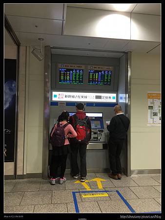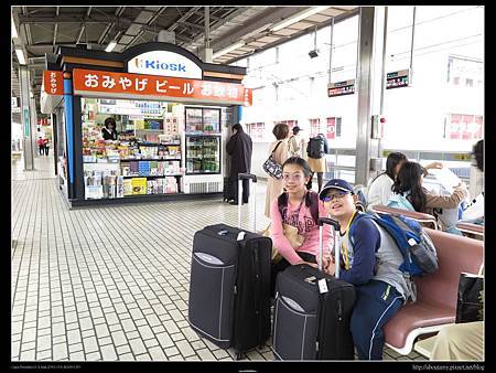 我們回到APA Hotel Nagoya-Nishiki Excellent飯店,把行李領出來,拿出自備的醫藥包幫Ashley和Ray塗塗藥,讓大家上完洗手間,便往京都出發! 由8號出口下榮駅地鐵站,搭乘東山線到名古屋駅下車. 出了名古屋駅再走平面進入JR新幹線車站http://english.jr-central.co.jp/info/station/index.html. 在自動購票機上購票http://english.jr-central.co.jp/tickets/buy/index.html後,買好Nozomi對號列車車票(新幹線特急),就直接前往月台搭車,這一路上Ray展現了責任感,有好好地顧好小行李箱. 像是上下地鐵時要整個提起行李箱,他也做得很棒!
