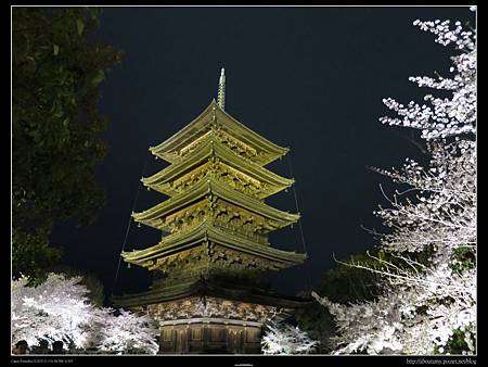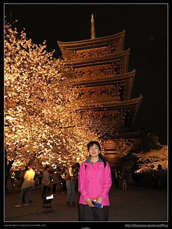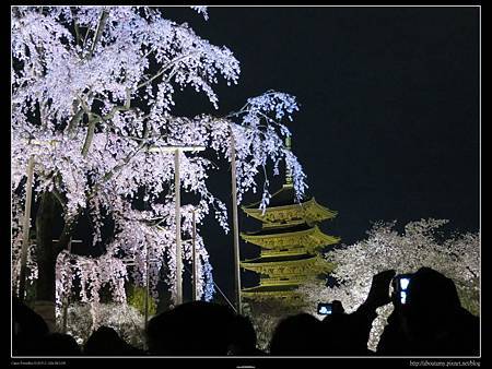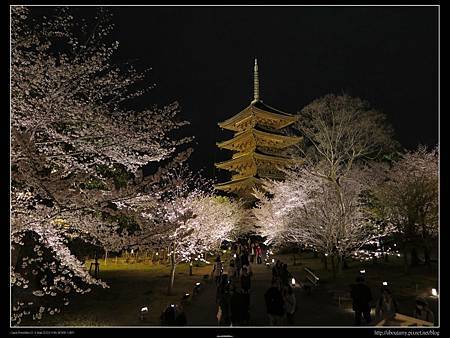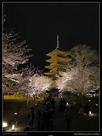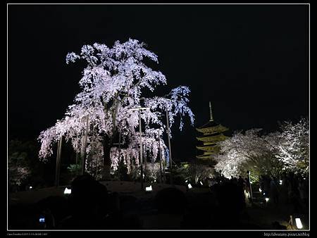 後來看著地圖,發現Alec推薦的東寺http://www.toji.or.jp/還蠻近的. 此時我一直鼓勵Willy搭計程車去東寺賞夜櫻(開放時間3/18/2016~4/17/2016 6:30PM~9:30PM 全票500日元,半票300日元),不要去二條城或祇園了. 一來,因為天黑加上雨天要找路,令我很不放心. 二來,記取昨天教訓,越有名氣、越大的賞櫻景點,人潮就越多. 三來,腿力要保留到了目的地才開始用.