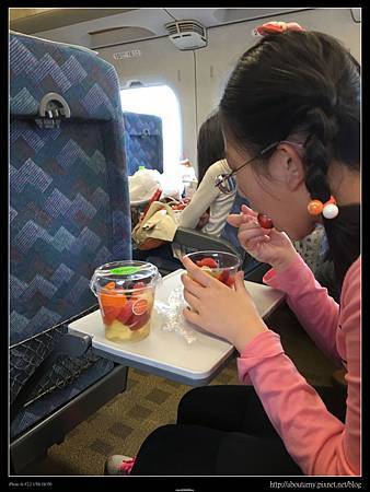 這是我第一次搭JR新幹線,感覺JR新幹線就類似台灣高鐵,不過內部座位的間距要寬些,車廂內的跑馬燈不只秀出即將到站的名稱,也秀出新聞. 上車後,我們把行李箱放置於自己的座位前面. 但是Ashley和Ray要吃之前在地鐵站內買的綜合水果杯,所以就把行李箱暫放到Willy那排座位(車上空位還蠻多的). 大約30分鐘左右,我們就抵達京都了.