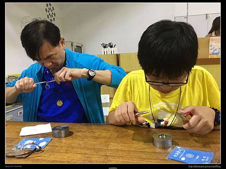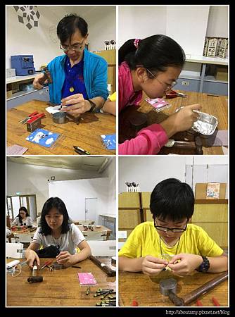 【光淙金工藝館】也是要事先預約的,幸好國慶假日3:00PM剛好有另外三組散客事先做好預約,我們得以搭上順風車參觀導覽做DIY. 不然剩下的半天還真不知在雨中玩什麼好呢?