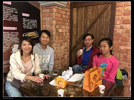 第一站,我們相約在【亞典蛋糕密碼館】http://www.rden.com.tw/. 因為順道,而且可以給大家上上廁所,順便在此吃早餐. Alec說他們一家人早已買了7-11的早餐在車上享用,因此不餓. 這裡面提供各式糕點給遊客試吃,是個旅行團來買伴手禮的好地方. 走逛一圈後,試吃了各式各樣的糕點,品質都還不錯呦! 最末Willy選了剛出爐的【半熟乳酪塔】,買了一盒給大家吃吃看. 而Ginny也去排隊拿免費的熱黑咖啡給大家喝.