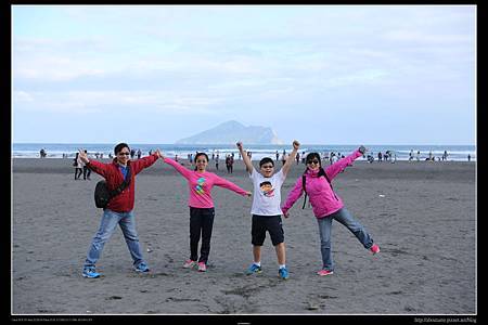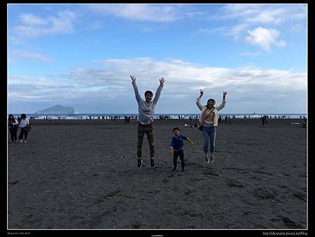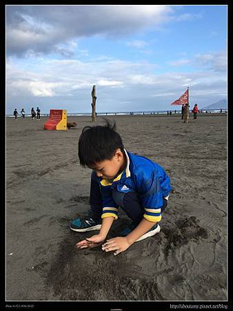 Alec也如願在沙灘上拍了許多美照,可惜天色陰陰的,所以龜山島拍得不是很清楚. 但是因為天色陰陰的,沒有大太陽,小孩們也才能玩沙玩到盡興. 大約玩到下午四點多,近五點,我們到【九號咖啡外澳館】https://www.facebook.com/WaiaoServiceAreaNo9Coffee20150101 內找位子休息.