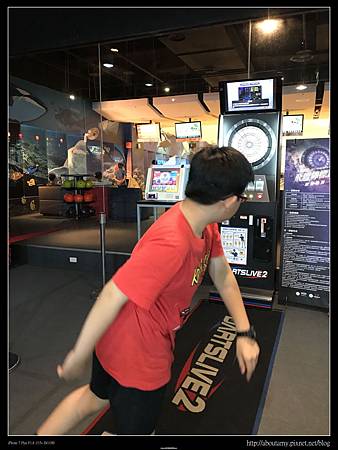 很快地時間到了,其實我的手也酸了。 我們退還了鞋子,又繼續換了一些零錢玩旁邊的遊樂器材,像是桌上曲棍球、射飛標、投籃…之類的,等大家都玩夠了才離開。