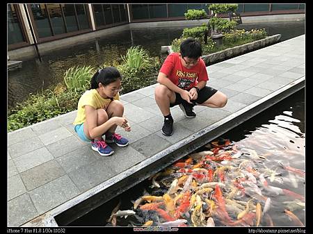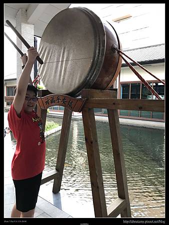這次我們上Agoda訂了兩間房,每房內都有二張大床,讓大家一整晚都睡得很舒服。距離預訂的【Orchard Cafe西餐廳-自助百匯】http://hotelorchardpark.com/food.asp晚餐時間還有15分鐘,於是我們就到餐廳後方的魚池餵魚。這魚群還真是整齊劃一地集體行動,多彩的顏色既生動又活潑。 Ray說像極了日劇「派遣女醫」中醫師們跟著院長巡房的情景。 後方還有一間日式餐廳,門口放置大鼓。 頑皮Ray也拿起鼓棒,作勢打鼓拍張照。