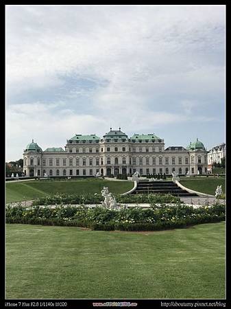 它號稱是維也納三大皇宮之一,是貴族歐根親王(Prince Eugene)的夏宮。目前是「奧地利美景宮美術館」(Österreichische Galerie Belvedere)https://en.wikipedia.org/wiki/Österreichische_Galerie_Belvedere 所在。我們來得很早,內部尚未開放。據說館內可以欣賞到許多知名畫家的畫作,最具代表性的就是維也納的分離派大師-克林姆(Gustav Klimt)的畫作-《吻》,可惜沒有機會入內參觀。
