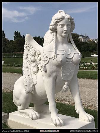 不過單單在戶外,就讓我們忍不住拍了許多張美麗的照片。在這些所謂巴洛克建築外面,都伴著巨大的半人半獸雕像,只是不知道背後的典故為何?光光整個「貝維德雷宮」(Schloss Belvedere)的上宮(Oberes Belvedere)和下宮(Unters Belvedere)前後庭園走透透,就感覺好大喔! 因為時間很早,除了少許的團客,還可以看到當地人在庭院裡步。 之後導遊帶我們在附近的小店上廁所(因為免費),Ashley順便買了張名信片要寄給老師,以便完成部份的暑假作業。