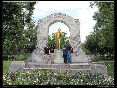 Wiener Stadtpar是維也納的第一座公園,裡頭有許許多多雕塑作品,其中就屬奧地利名作曲家 約翰·史特勞斯二世 或稱 小約翰·史特勞斯 (英語: Johann Strauss 德語:Johann Baptist Strauss)的鍍金銅像最引人注目,這也是導遊帶我們來此拍照的主要目的。像大家都耳熟能詳的曲子《藍色多瑙河》就是奠定Johann Strauss成為《圓舞曲之王》最著名的作品。