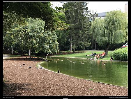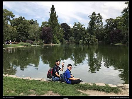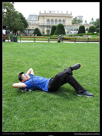 只可惜我們這一家偏愛拍Wiener Stadtpar的陽光、草皮、湖畔及悠閒躺在草地上,坐在涼椅上休閒的人們。要不是現在跟著旅行團趕路中,我也想選一棵大樹,鋪一張野餐墊在底下席地而躺。因為這裡的天氣是待在陽光底下很熱,但是只要在有陰影或樹蔭的地方,微風輕拂,還是很涼快的。